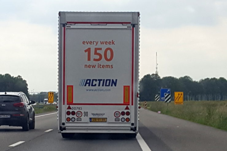 We came across this when we drove home from Diepenheim. 150 new items every week. That is 150 × 52 = 7,800 new items per year. Wow! And that is just one company. That makes you curious and encourages you to buy. To buy new stuff that you may, but may not need at all. That would fit perfectly on one of our photos. Exactly what this project is about.